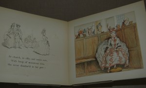 painfully sexist, Caldecott’s An Elegy on the Glory of Her Sex, Mrs. Mary Blaize is a sarcastic and witty treatment of a hypocritical upper-class woman. Caldecott began his artistic career with newspapers, illustrating satirical cartoons of politicians. His picture books (which he both wrote and illustrated) show the obvious residue of his earlier career. Would today’s child be the intended recipient for the somewhat subtle humor of “At church in silks and satins new, With hoop of monstrous size, She never slumber’d in her pew– But when she shut her eyes”? I’m not talking about the sophistication of an older form of speech. Crane has a childish book about fairies that goes “The sullen Winter nearly spent, Queen Flora to her garden went, To call the flowers from their long sleep, The year’s glad festival to keep.” Formal, but simply the tone of the time. Rather, I’m talking about an obvious content appeal for adults.