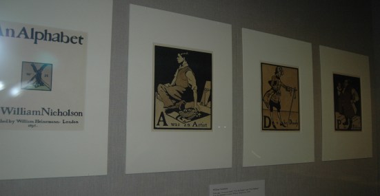 The texts that particularly struck my interest were those by Caldecott and Nicholson, purely because they didn’t seem quite right for children (perhaps for the very reason that the ones that are familiar have shaped our modern day sentiment of what a child’s story is). The exhibit mentions that picture books at this time were not only meant for children. It stands to reason that the new abundance and availability of brightly colored books would appeal to everyone in its novelty, not just kids. But in viewing some of the lesser known texts, it seems that aside from the impressive pictures some of these books could also appeal to adults via their content. While the title is