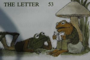 It’s Frog and Toad are Friends, written in 1970, the first in a series of three (or four?) by Arnold Lobel.  This, my friends, is an I Can Read Book (as are the Dr. Seuss books). And as much as it riles a little private place in my soul to get excited about a book that touts the important but also oh-so-overly laudatory “I Can Read!” moment, I still do. Why do I like this book? First and foremost: Toad. It’s all about Toad. He’s the sort of character I find all too comfortably endearing. He’s Eeyore to Poo, he’s Jack to Algernon, he’s Cameron to Ferris Bueller. He’s grumpy, gullible, and self-defensive, he’s your sadly loveable grandfather and your childhood best curmudgeon friend all rolled into one. He wears striped, full body bathing suits and wool jackets, and he sleeps a lot. Life’s outwardly hard for these kind of guys, but inside, they like their grumbly-ness. It also doesn’t hurt that the other compelling element of this book is that Toad’s yin has its yang. After all, it’s Toad and Frog. And when they’re together, life’s all good in the pond.